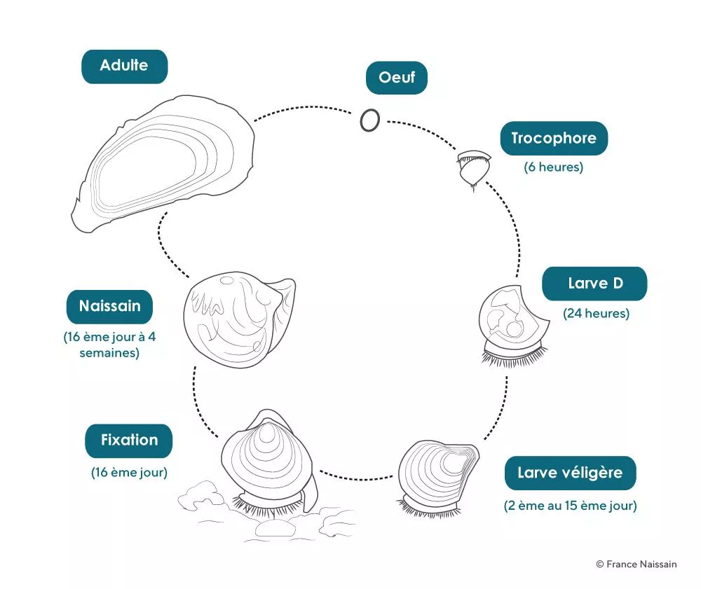 L'huître, avant d'atteindre la taille adulte, traverse différentes phases de développement.